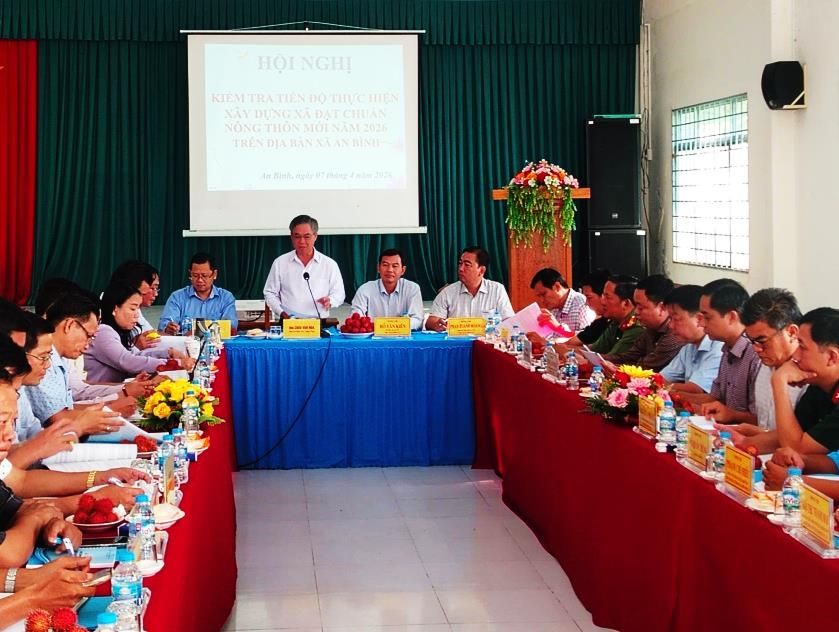 Thực hiện Kế hoạch của Ban Chỉ đạo các Chương trình mục tiêu quốc gia tỉnh, sáng ngày 07/4/2026, đoàn công tác của tỉnh Vĩnh Long đã có buổi làm việc với xã An Bình nhằm kiểm tra, đánh giá tiến độ thực hiện Chương trình xây dựng nông thôn mới năm 2026.